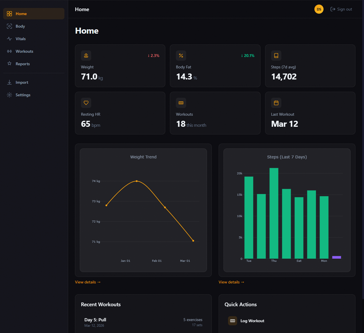 AI-powered health and performance tracker with Fitbit integration, body composition tracking, and science-based weekly/monthly reports generated by a multi-agent LLM pipeline.